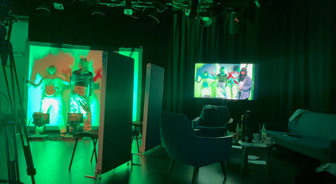 Verksted i en live sitcom-inspirert ramme, med green-screen som visuelt hovedobjekt.